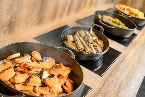 ¤Þ¤¿¡¢¥é¥¤¥Ö¥¥Ã¥Á¥ó¥³¡¼¥Ê¡¼¤Ç¤Ï¡¢Âçʬ̾ʪ¤Î¤È¤êÅ·¤ä¶å½£¤È¤ó¤³¤Ä¥é¡¼¥á¥ó¤Ê¤ÉÃϸµ¤Î¿©ºà¤ò¥·¥§¥Õ¤¬ÌܤÎÁ°¤ÇÄ´Íý¤·¤Æ¤¯¤ì¤ë¤Î¤Ç¡¢¤¢¤Ä¤¢¤Ä¤ÎÃϸµ¤Î¥°¥ë¥á¤ò´®Ç½¤¹¤ë¤³¤È¤â¡£