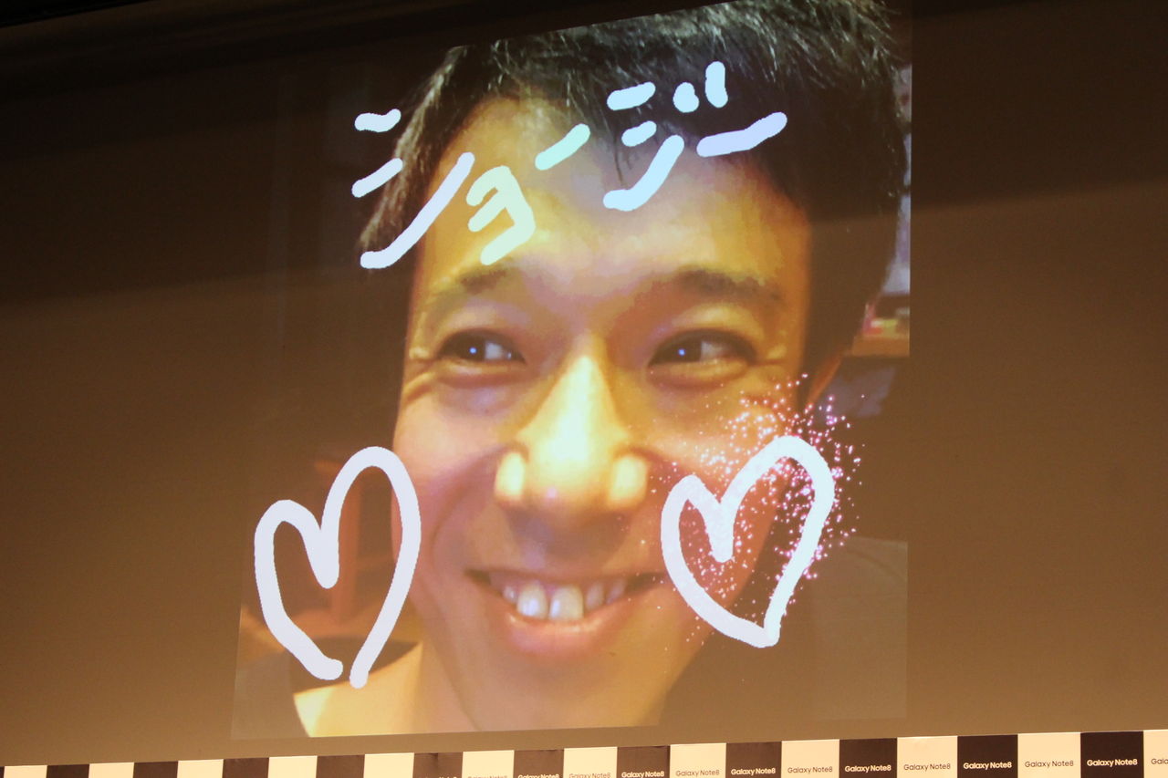 Æ£ËÜÈþµ®¤µ¤ó¤Ï¡¢Éס¦¾±»ÊÃÒ½Õ¤µ¤ó¤Î¥¢¥Ã¥×¼Ì¿¿¤Ë¡¢¾±»Ê¤µ¤ó¤Î»ý¤Á¥Í¥¿¤Ç¤¢¤ë¡Ö¥ß¥¥Æ¥£¡½¡×¤ò¡¢¾±»Ê¤µ¤ó¥Ð¡¼¥¸¥ç¥ó¤Ë¤·¤¿¡Ö¥·¥ç¥¦¥¸¡½¡×¤È½ñ¤«¤ì¤¿¥é¥¤¥Ö¥á¥Ã¥»¡¼¥¸¤òÈäϪ¡£