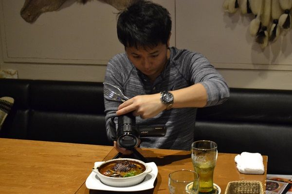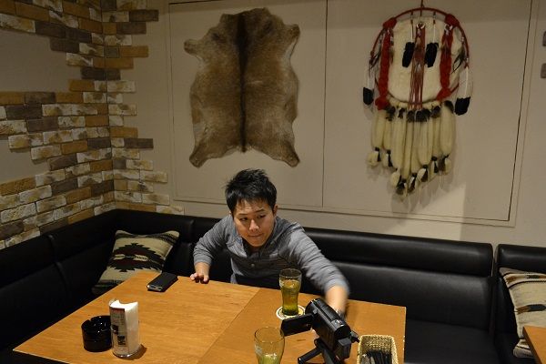いつも通り、お店の前でオープニングを撮り終えると、さっそくテーブルにカメラを置き、アングルチェック。
