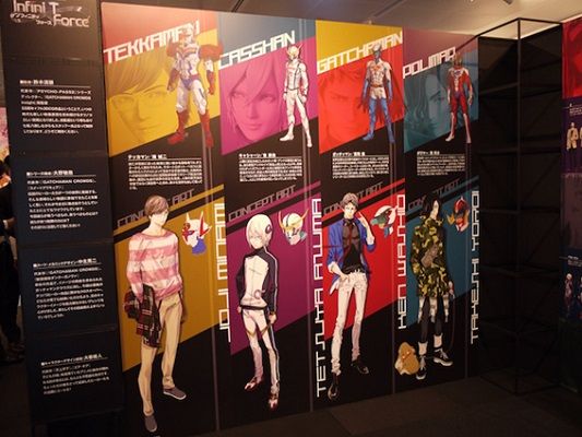 ガッチャマンやキャシャーンなど、タツノコプロを代表する伝説のヒーローたちが集結した55周年記念作品のテレビアニメ「Infini-T Force」(2017年10月から日本テレビ系などで放送中)のブース。作品が作られるまでの最先端のアニメーション技術などを紹介。