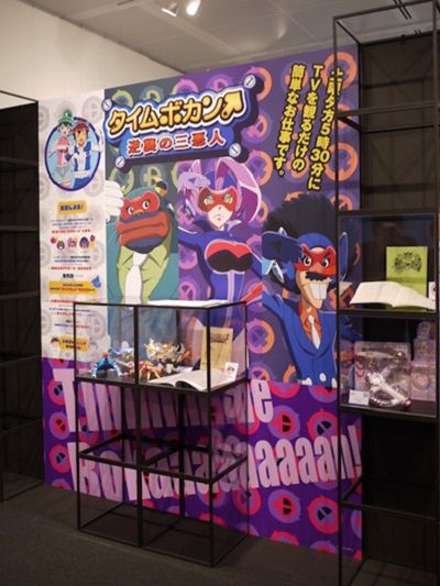 1975年から1983年まで7作品が放送され、その後も続編やリメイクなどが続くテレビアニメシリーズ「タイムボカン 逆襲の三悪人」のブース。普段なかなか見ることのできないアニメ動画の台本や玩具も用意。