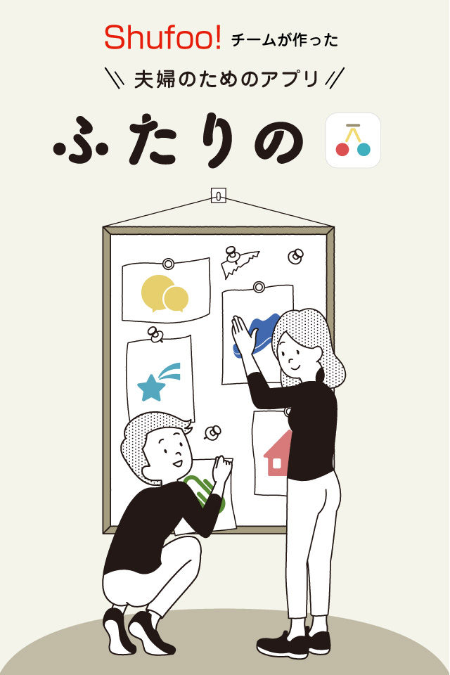 そこで、凸版印刷株式会社は、11月22日(水)に夫婦向けコミュニケーションアプリ「ふたりの」を開発、公開した。「Shufoo!」の運営で培った「主婦を中心とした860 万人のユーザ資産」を活用し、夫婦のすれ違いを解消することを目指した無料アプリは非常に画期的である。
