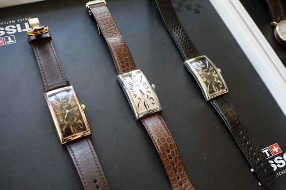 ケースを横から見るとバナナのように湾曲していることから「バナナ・ウォッチ」として親しまれている、「ティソ ヘリテージ バナナ センテナリーエディション」。すっきり手首に沿うようなデザインと、インデックスの大胆な美しさが魅力。