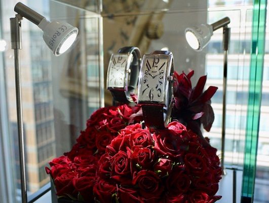 来場者ははじめに簡単なアンケートに答えて、二人の運命度をチェック。その後、同伴者と別々の展示ブースに進み、専任コンシェルジュより“シェアウォッチ”としてオススメの時計が紹介され、試着する。