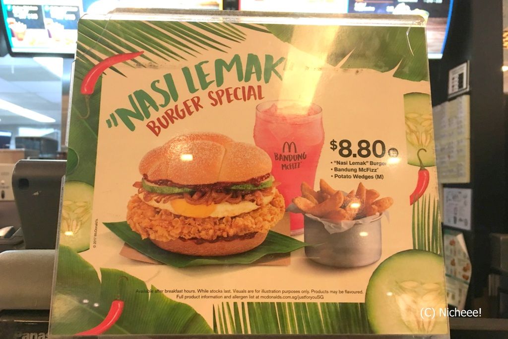 ナシレマ・バーガーは、シンガポール独立記念日(8月9日)に合わせて発売された期間限定メニュー。ココナッツご飯のナシレマは、シンガポールの国民的グルメ的存在で、それがマクドナルドのバーガーになった話題性も合わさって、発売と同時に大人気となったとか。