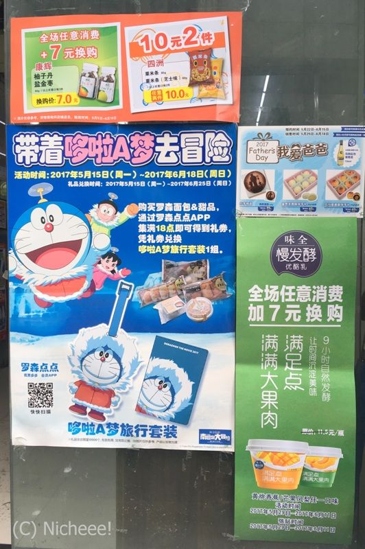 中には、日本人向けなのか、無糖のお茶のペットボトル、みそ汁なども置いてあります。日本の味が恋しくなったら、日系コンビニに立ち寄るも手です。また、プライベートブランドの中国限定お菓子などはそのまま日本へのお土産に、ネタにもなりそう。