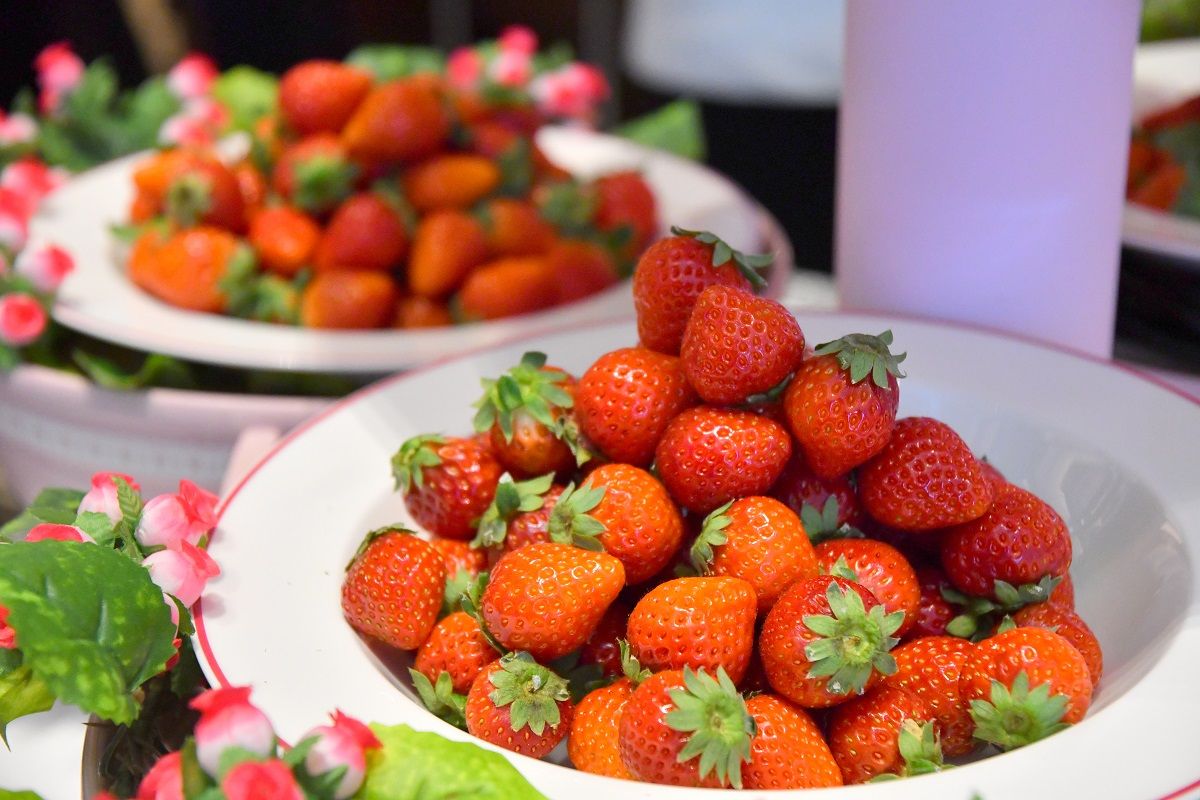 活性炭は、ハリウッドのセレブたちの間で流行し始め、体内の不純物や毒素、脂質などを吸着する体質があってダイエットの観点からも注目されている。特に、活性炭は無色無臭で料理との相性も良く、今回のストロベリーブッフェでは、黒とピンクのスイーツがまさに競演する様子が見た目から、そしてじっくり味わっても存分に楽しめる。