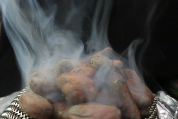 カカオ豆のローストを本来の7〜8割に抑え、残りを燻製で仕上げて香りをカカオ豆に移しているとのこと。燻香豊かなチョコはお酒との相性もピッタリ。