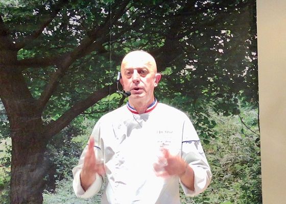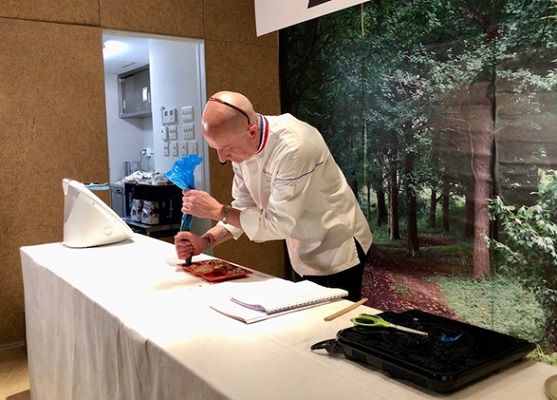 発表会ではレストランで提供されるメニューの試食会も行われた。壇上ではボルヌ氏によるデモンストレーションも披露され、料理の説明も聞くことができた。