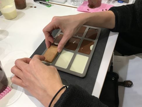 3¤ÄÌܤϡ֥Á¥ç¥³¥¯¥Ã¥¡¼¡×¤Ç¤¹¡£¥á¥Ã¥»¡¼¥¸¤¬Æþ¤Ã¤¿·¿¤Ë¥Á¥ç¥³¥ì¡¼¥È¤òή¤·¹þ¤ß¡¢¥¯¥Ã¥¡¼¤ò¾å¤«¤é½Å¤Í¤Æ¸Ç¤á¤ë¤À¤±¡£¤Þ¤µ¤Ë¥¢¥ë¥Õ¥©¡¼¥È¤Ë¤è¤¦¤Ê¥¯¥Ã¥¡¼¤ò¼«Ê¬¤Çºî¤ì¤Á¤ã¤¤¤Þ¤¹¡£¥Á¥ç¥³¥ì¡¼¥È¤Î¿§¤òº®¤¼¤ì¤Ð¥Þ¡¼¥Ö¥ëÊÁ¤â¤Ç¤¤Þ¤¹¤è¡ª