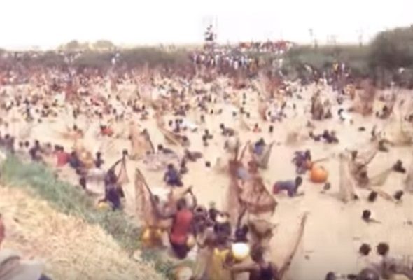 釣り大会とは言え、釣り竿で釣り上げるという行儀の良いものではなく、何千人もの漁師たちがスタートと同時に次々に川になだれ込み、たも網や小型の漁船などを駆使して、ナイルパーチなどのアフリカ原産の魚を捕獲しまくるというクレイジーな内容になっている。大物の魚になればその重さは200kgを越える。伝統的な漁具の使用OKなのだが、実際のところ殆どの人が水中に潜り素手などで魚を捕獲する。