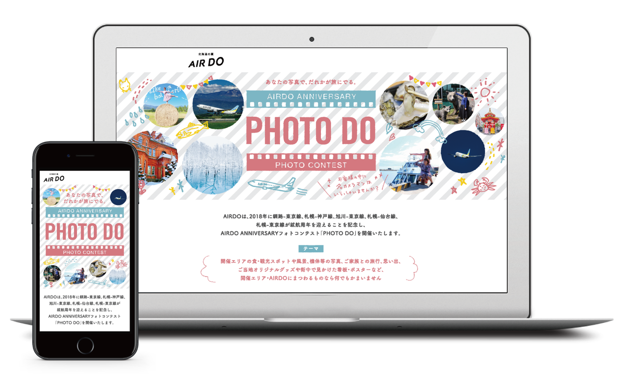応募方法は、就航周年を迎える路線の各エリアもしくはエア・ドゥにまつわる写真を、ハッシュタグ(#)をつけてツイッターおよびインスタグラムに投稿。この中から入選すると、エア・ドゥの往復航空券や就航地の特産品がプレゼントされる。対象となる被写体は、各地の食、観光スポット、風景、家族との旅行や思い出、機体などの写真、街なかで見かけた看板、エア・ドゥの機体など。