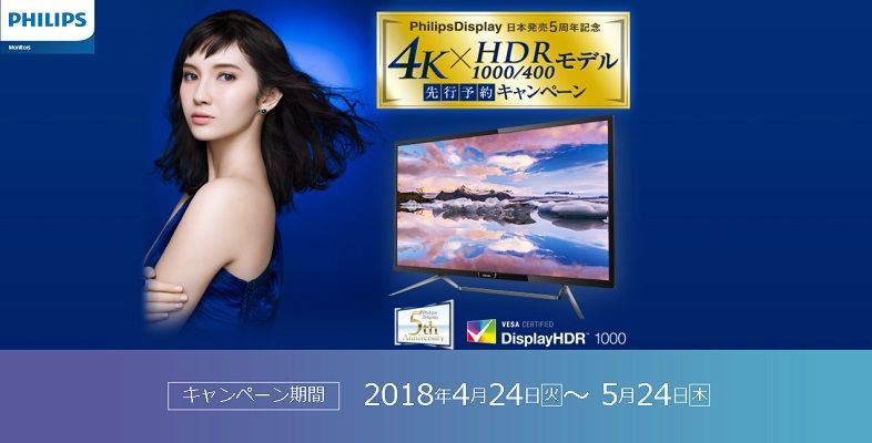 現在、Philips Display日本発売5周年と、日本初「DisplayHDR 1000」認証モデル発売を記念して、先行予約キャンペーンを実施中!