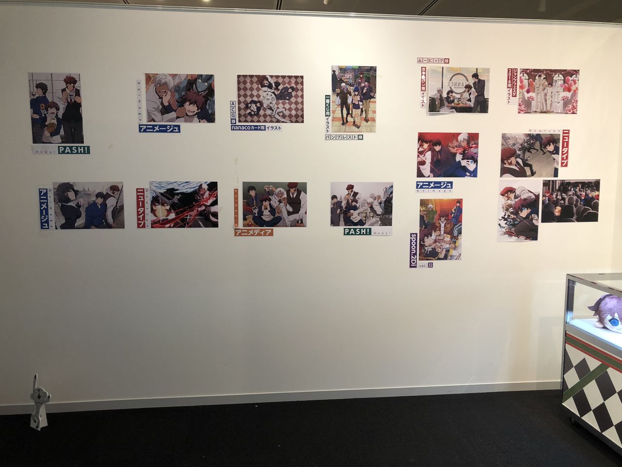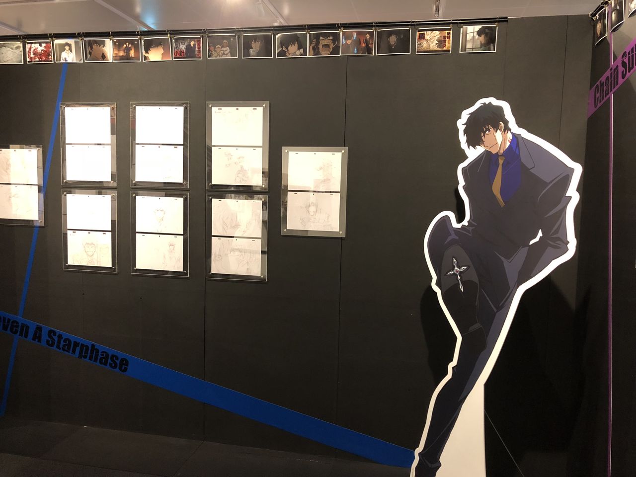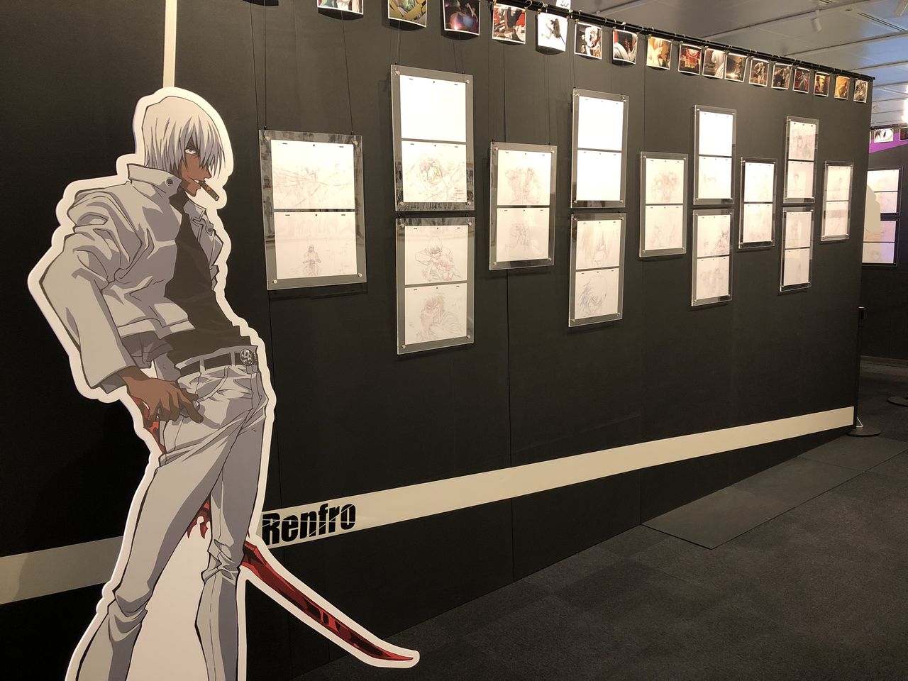 その横から奥の通路までずっとキャラクターの原画がずらり。