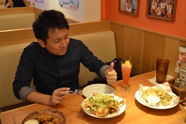 フーターズで好きなメニューは、スライスステーキで、ガーリックライス無しでも美味しく食べられ、カロリーを気にしてる人にもオススメとのこと。