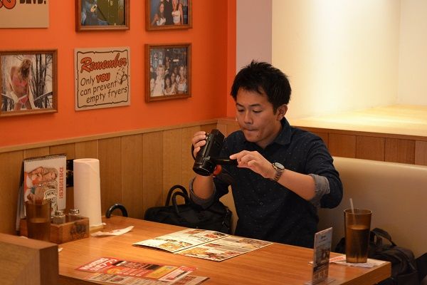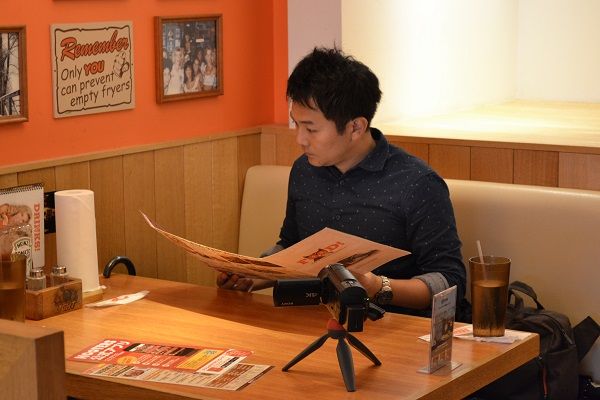 その後は、いつも通り、カメラをセッティングして、メニューを撮影。最初に頼むドリンクを決めていました。
