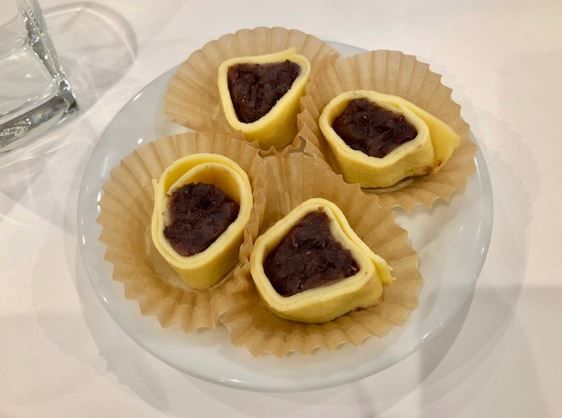カットしたクレープ。白玉やイチゴ、アイスなどをトッピングして自分好みのアレンジも楽しめそうですね。