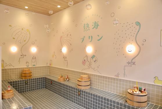 「熱海プリンカフェ2nd」のテーマは“みんなで楽しむおふろ”。古き良き熱海の温泉街に溶け込むような可愛いデザインに思わず目を奪われます!