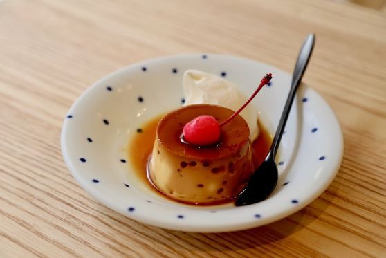 「皿プリン(450円)」。熱海プリンよりもやや固めで、子どもの頃にお母さんが作ってくれたような懐かしさ溢れる味わい。