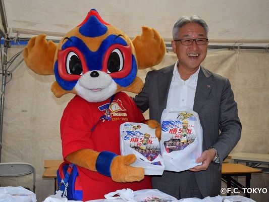クラブマスコットの東京ドロンパも販売のお手伝いに参加。