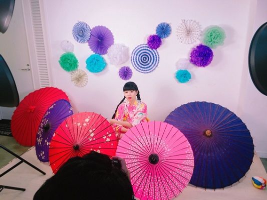 傘や壁のお花はスタジオの方が準備していただけました♪