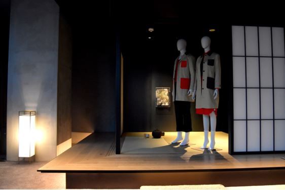 「koe×THOM BROWNE. LAST collection」のコレクションを実際に展示してた客室、XLルーム。日本の伝統芸能の象徴である「茶室」の要素を現代的な解釈で表現した部屋は4人まで宿泊可能で、海外からの家族旅行客も利用するそう。