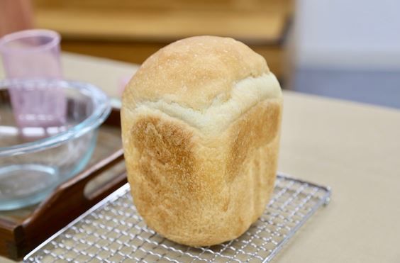 予めセットされていたホームベーカリーで焼き上がったパン・ド・ミ。香ばしい小麦の香りがたまりません!