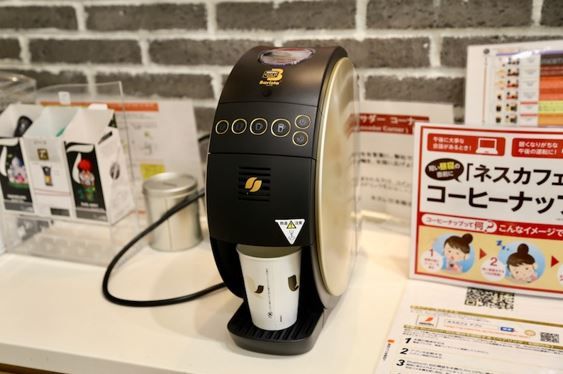睡眠カフェにて使用されるコーヒーマシン「ネスカフェ ゴールドブレンド バリスタ」。簡単な操作できめ細かなクレマ(泡)を楽しめる本格的なコーヒーや、カフェラテが出来上がる。気軽にお家カフェ気分を楽しめるのも魅力です。