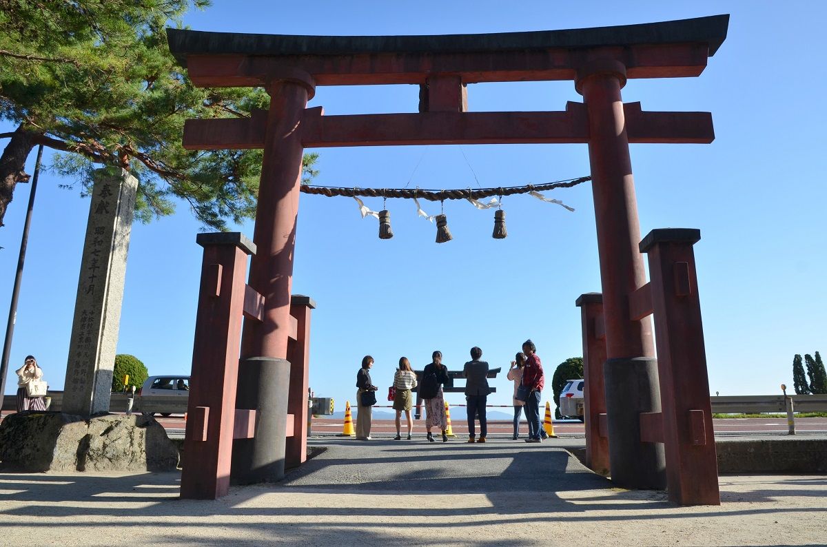 ちなみに、現在の大鳥居は、かつて神社前の湖中に鳥居があったという伝説や絵画があったことで、1937年(昭和12年)に大阪の薬問屋によって寄進されたもの。のち1981年(昭和56年)に再建された。