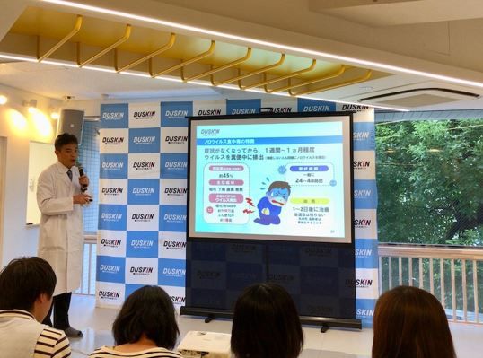 11月頃から発生件数が増え始め、12月〜1月が発生のピークになる傾向があるノロウィルス感染。ダスキンはこのノロウィルス対策として正しい予防法や対処法などを解説する「ノロウィルス対策セミナー」を11月8日に都内の保育園にて開催した。