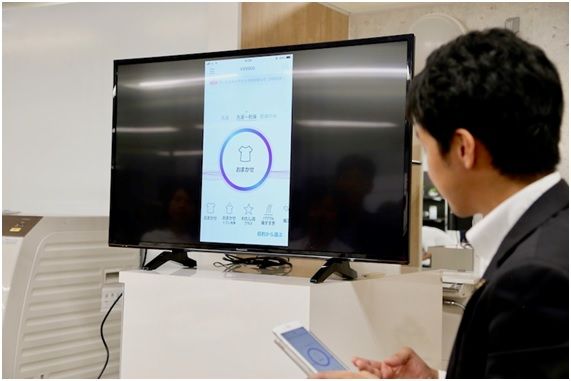 スマートフォンアプリ「スマホで洗濯」を使えば、外出先から洗濯機を操作することも可能。運転の開始や終了時刻の予約が可能に。離れた場所からも「洗い」「すすぎ」「脱水」「乾燥」などの運転中の内容や、残り時間や予約時刻も確認できる。