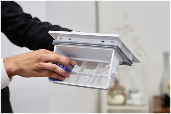 洗濯機のお手入れの中でも特に煩わしい「排水フィルターの掃除」や「乾燥フィルターの掃除」も改良。排水フィルターは従来のバスケット形状からクシ歯形状にリニューアル。歯ブラシでさっと流すだけで簡単にゴミが取れる。
