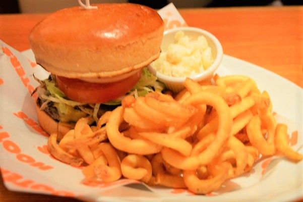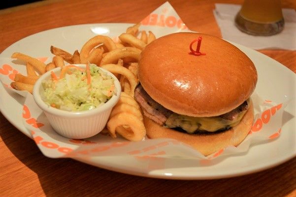 「フーターズチーズバーガー」には、トッピングでグリルオニオンとグリルマッシュルームを付けて注文!