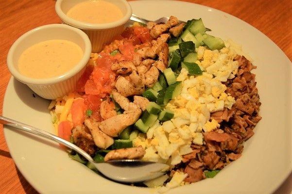 まず1品目は、「コブサラダ」(1600円)。3〜4人前くらいありそうな凄いボリュームです!