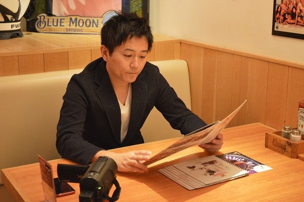 いつも通り、お店の前でオープニングの撮影を行い、店内に入ってメニューを選ぶ、わっきーさん。