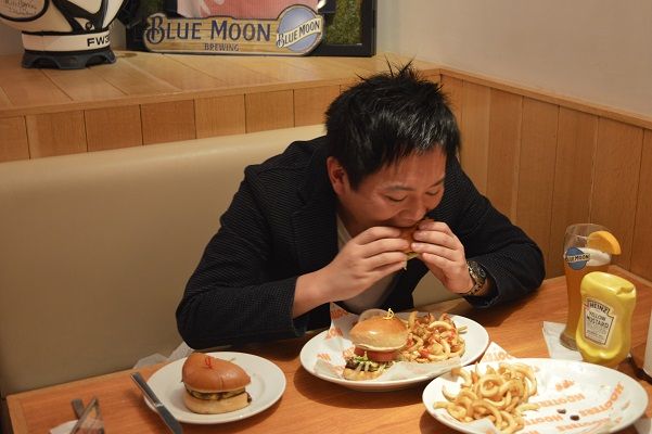 2つとも豪快にかぶりついて実食!どちらもビーフパティが凄い肉厚でボリューム満点!!
