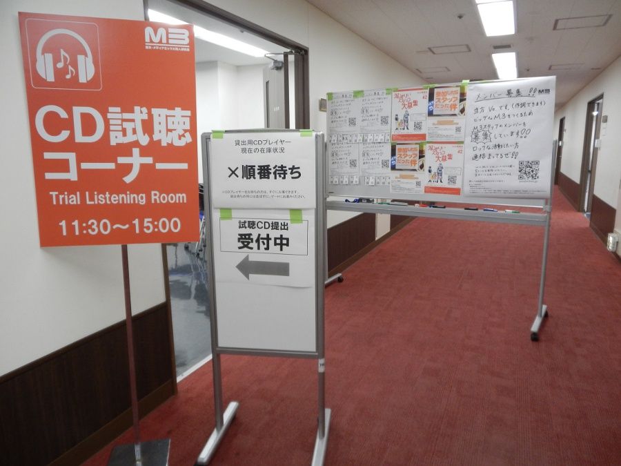 CD試聴コーナーは、CDプレイヤー(ノートPC不可)を持ち込まないと入場できない。CDプレイヤーを持っていなければ、M3準備会のCDプレイヤーを借りる必要がある。