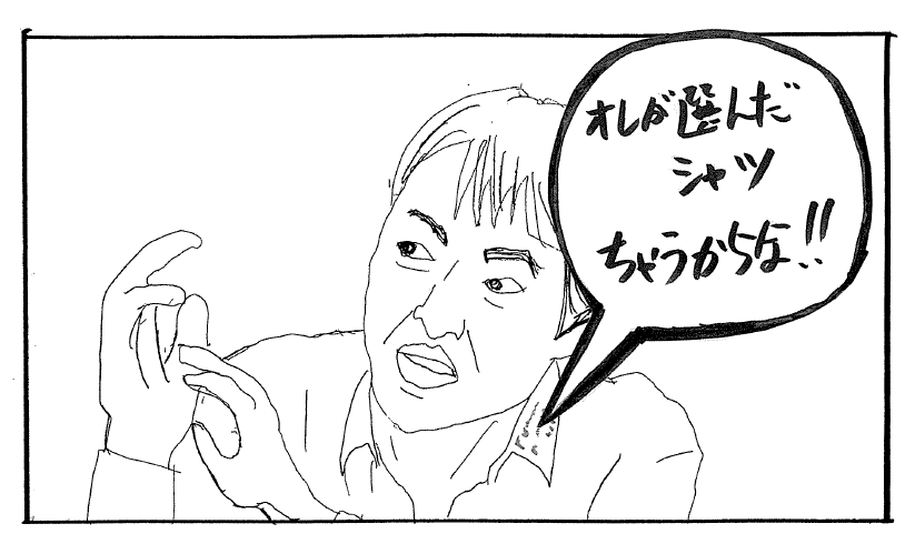 これを語っている時、ジュニアさんが1ショット、もしくは松本さんと2ショットで画面にアップになるのですが、番組を見ていた筆者的にはジュニアさんのシャツの“エリ”に、なんだかわけのわからない小さな文字がごにょごにょと書いてある事に気づき、それからというもの話の内容よりもそっちが気になり始めてしまったのです!