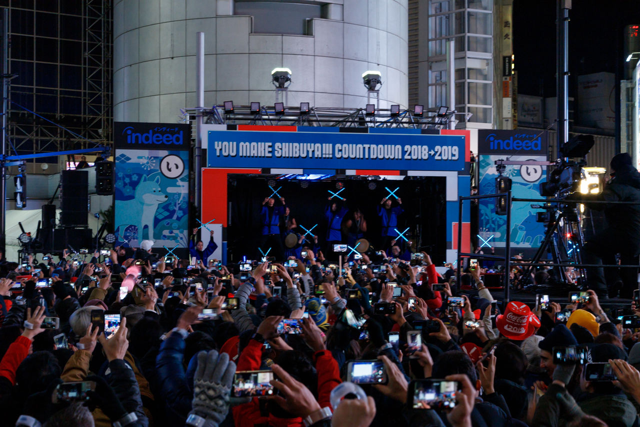 Åìµþ¡¦½Âë±Ø¼þÊÕ¤Ç2018ǯ12·î31Æü¡Á2019ǯ1·î1Æü¡¢¥«¥¦¥ó¥È¥À¥¦¥ó¥¤¥Ù¥ó¥È¡ÖYOU MAKE SHIBUYA COUNTDOWN 2018-2019¡×¤¬³«ºÅ¤µ¤ì¤¿SHIBUYA109¤Î¥á¥¤¥ó¥¹¥Æ¡¼¥¸¤Ç¤Ï¡¢Indeed Japan¤Ë¤è¤ë¥«¥¦¥ó¥È¥À¥¦¥ó¥¹¥Æ¡¼¥¸¤¬³«ºÅ¡£ÇÛÉÛ¤µ¤ì¤¿LED¥ê¥¹¥È¥Ð¥ó¥É¤ò¿È¤ËÉÕ¤±¤¿»²²Ã¼Ô¤¿¤Á¤¬¿·Ç¯¤Îˬ¤ì¤òÂÔ¤Á¾Ç¤¬¤ì¡¢¥«¥¦¥ó¥È¥À¥¦¥ó¤Ø¤Î´üÂÔ¤¬¹â¤Þ¤ëÃæ¡¢ÅÁÅý¤È³×¿·¤¬Í»¹ç¤µ¤ì¤¿¥¹¥Æ¡¼¥¸¤¬³«»Ï¡£2018ǯ¤È2019ǯ¤Î´³»Ù¡¦Øü¤ÈÃö¤òÌϤ·¤¿Âç·¿¥«¥ë¥¿¤¬¸½¤ì¡¢ÄÅ·Ú»°Ì£Àþ¤äÏÂÂÀ¸Ý¡¢¼ÜȬ¤Ë¤è¤ëϳڴï±éÁդȡ¢¹ñÆâ³°¤Ç³èÌö¤¹¤ë¥À¥ó¥µ¡¼TAISUKE¤µ¤ó¤äIBUKI¤µ¤ó¡¢¥Ò¥å¡¼¥Þ¥ó¥Ó¡¼¥È¥Ü¥¯¥µ¡¼KAIRI¤µ¤ó¤é¤Ë¤è¤ë¡¢ÅÁÅý·Ýǽ¤Ë¸½Âå¥Ñ¥Õ¥©¡¼¥Þ¡¼¤¬²Ã¤ï¤Ã¤¿³×¿·Åª¤ÇÇ÷ÎϤ¬¤¢¤ë¥Ñ¥Õ¥©¡¼¥Þ¥ó¥¹¤¬»Ï¤Þ¤ë¤È¡¢ËüÍë¤Î³åºÓ¤¬Ê¨¤µ¯¤³¤Ã¤¿¡£