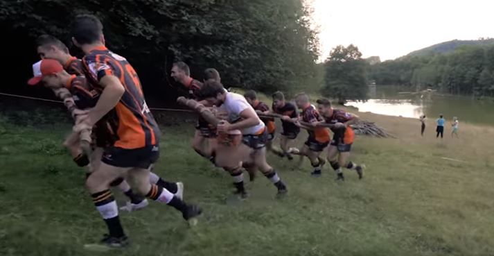 池の中に旋回式の木製ブランコを設置、車でロープを牽引することで回転するブランコスイングかと思いきや、なんと牛やラグビー選手などを使って、全力でロープを牽引させてしまうという驚愕のアナログパワー型ブランコスイングだという!