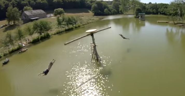 ブランコ装置が池の真ん中に立っており、全力で振り回せされた後に池に放り出されてしまうアドレナリン全開のアクティビティに見ているこっちも楽しくなってしまう。