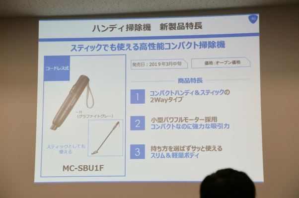3月中旬に発売予定の「ハンディ掃除機」。コンパクトハンディ&スティックの2通りの使い方が可能。床以外の細かい場所の掃除や、手軽に床をさっと掃除したい時に大変便利だ。