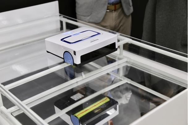 実際に新製品を使ったデモンストレーションも行われた。掃除面に回転ローラー式を採用することで、常に綺麗な面での掃除が可能に。雑巾の面を変えたり洗ったりする「人による拭き掃除」の動きを実現した。