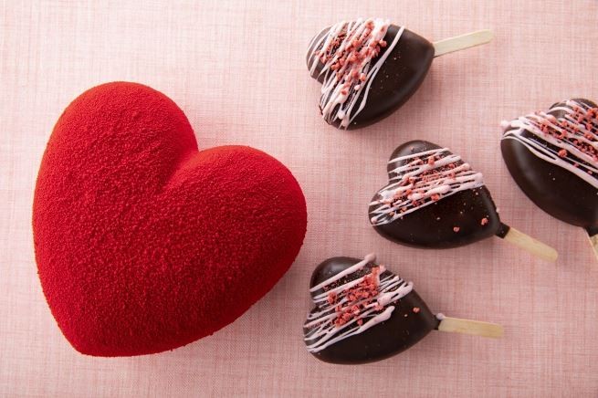 大切な気持ちを代弁してくれるような赤いハートのムースはその名も「モンシェリ(仏語で愛しい人の意味)」。甘すぎない大人の味が楽しめるストロベリームースはストロベリースポンジを加え、中には食感が楽しいストロベリーフィユティンチョコクランチが入っています。もらう人の笑顔が目に浮かびそうなハートのロリポップ「ジュテーム」は、特別な気持ちを伝えるときもちろん、みんなに配っても喜ばれること間違いなし!