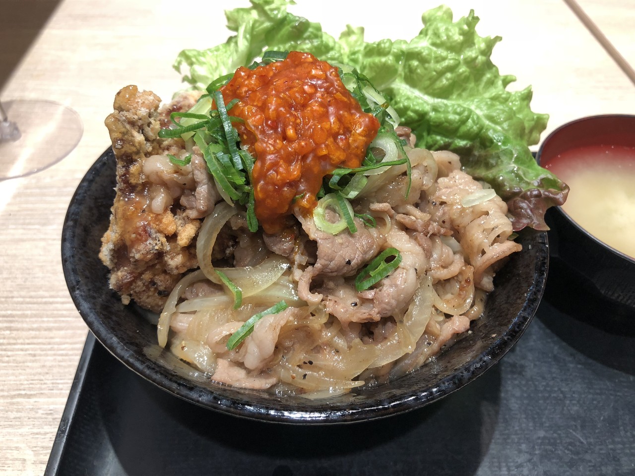 今回の「やみつき牛カルビ合戦丼」は、すた丼屋史上初の"すたみな唐揚げ"と"牛カルビ"の合盛りです。