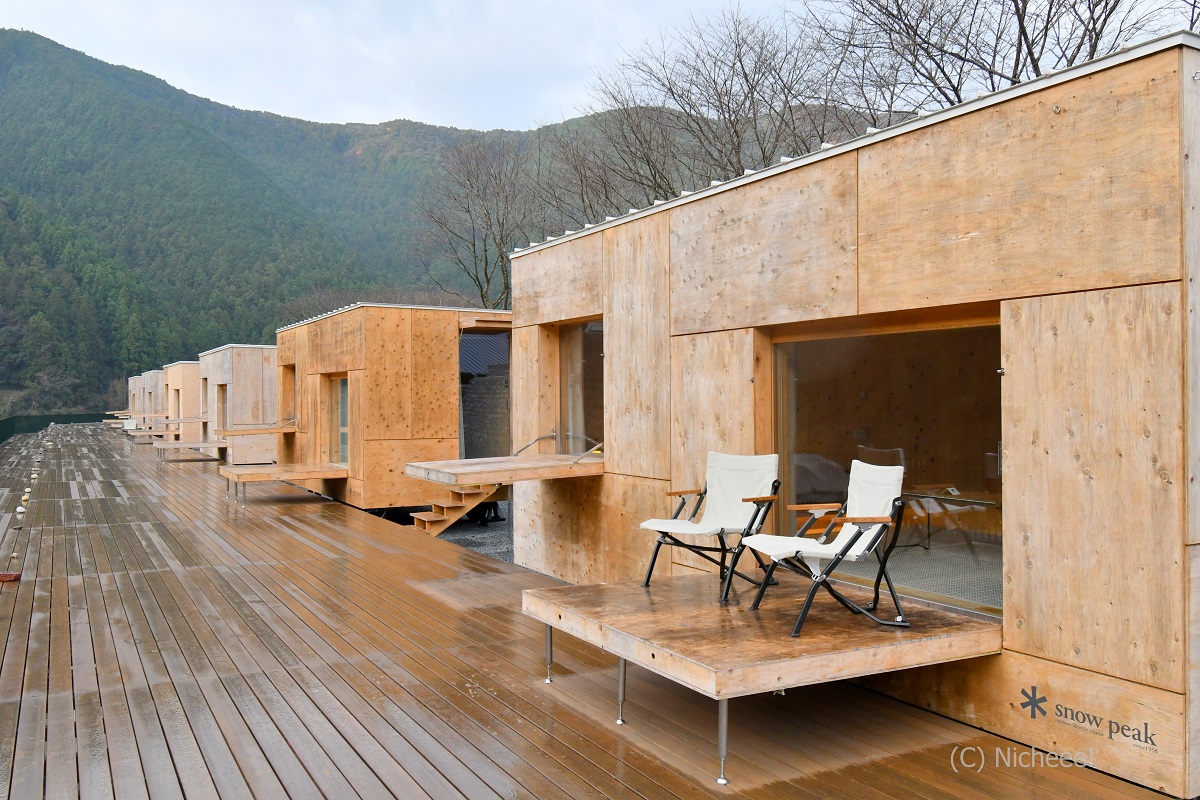 高知の自然体験スポットで人気なのが、越智町にある「スノーピークおち仁淀川キャンプフィールド」。ここに、テントを張って滞在するのとは別の宿泊施設があります。