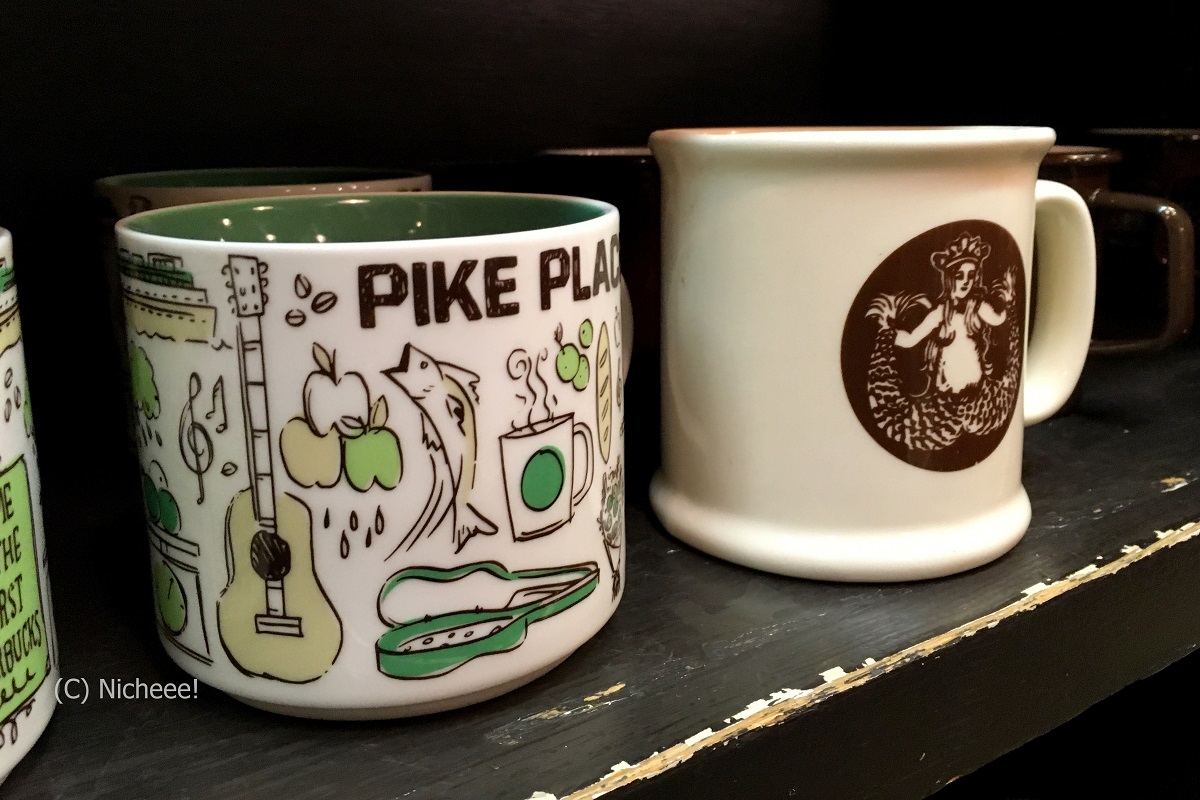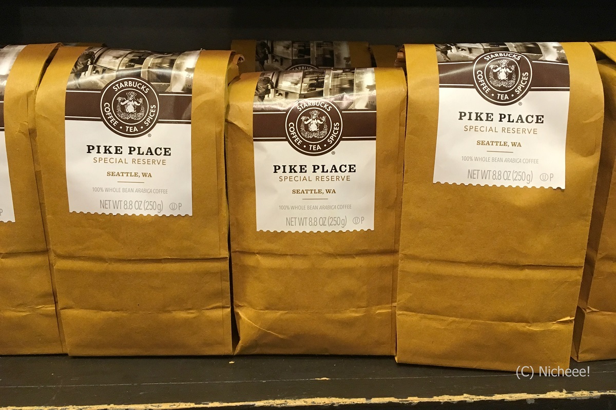 スターバックス1号店自体がシアトルの一大観光スポットであるため、いつでも長い列ができています。とにかく狭い店内は、座ってくつろぐスペースなど皆無。テイクアウトでコーヒーを買って外で飲むか、あとお目当ては「1号店限定グッズ」。マグカップやコーヒー豆などこの1号店でしか売っていないグッズが飛ぶように売れているのを目の当たりにしました。