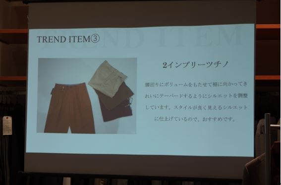 春夏に活躍する新アイテムその3「2インプリーツチノ」
