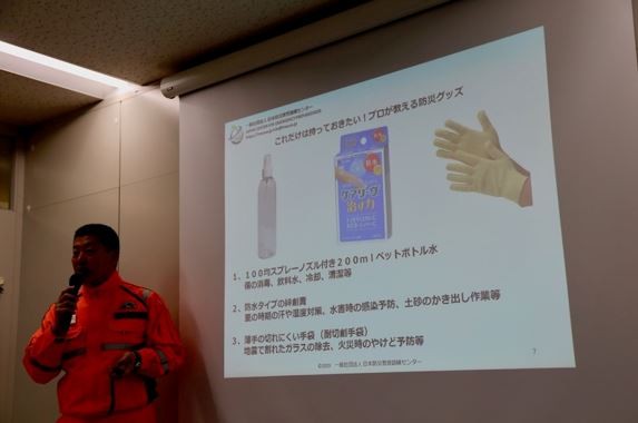 ワークショップでは「就寝中に大地震が起きたらどうするか?」という質問からスタート。また非常時の持ち出し品として、携帯ラジオや懐中電灯、非常食、衣類だけでなく、女性や子供に特化した防災グッズも必要になるとの話が伺えた。