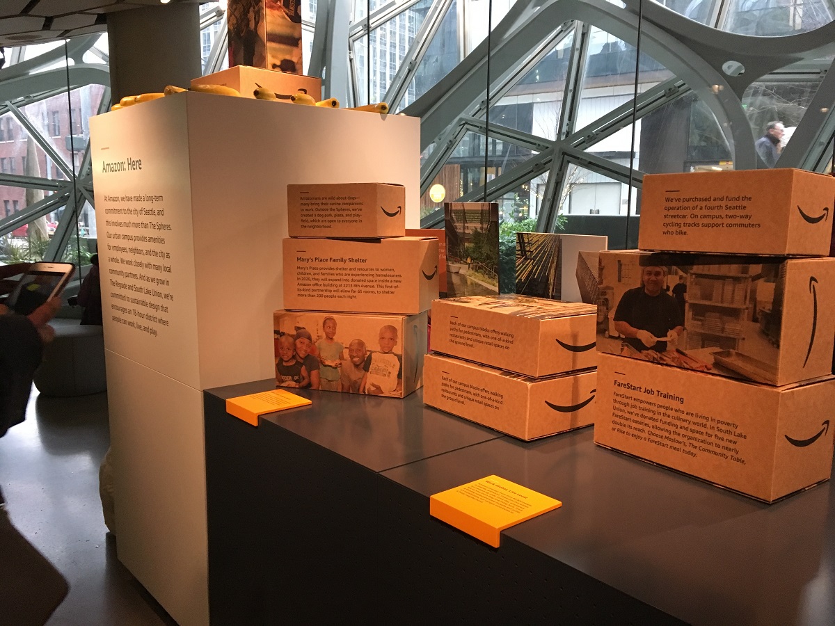 なお、スフィアに隣接する展示室「アンダーストーリー」は、営業時間内なら予約なしで誰でも入場可能。無料です。スフィアの模型、アマゾンの社屋についての歴史などが紹介されています。